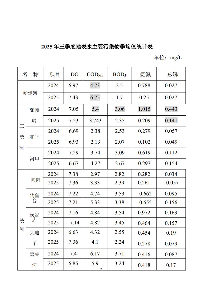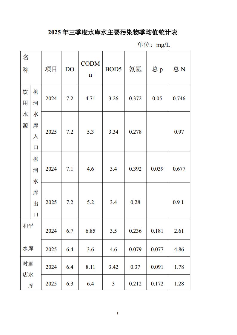 现将2025年三季度柳河县地表水环境质量状况和柳河镇大气环境质量状况公布如下: