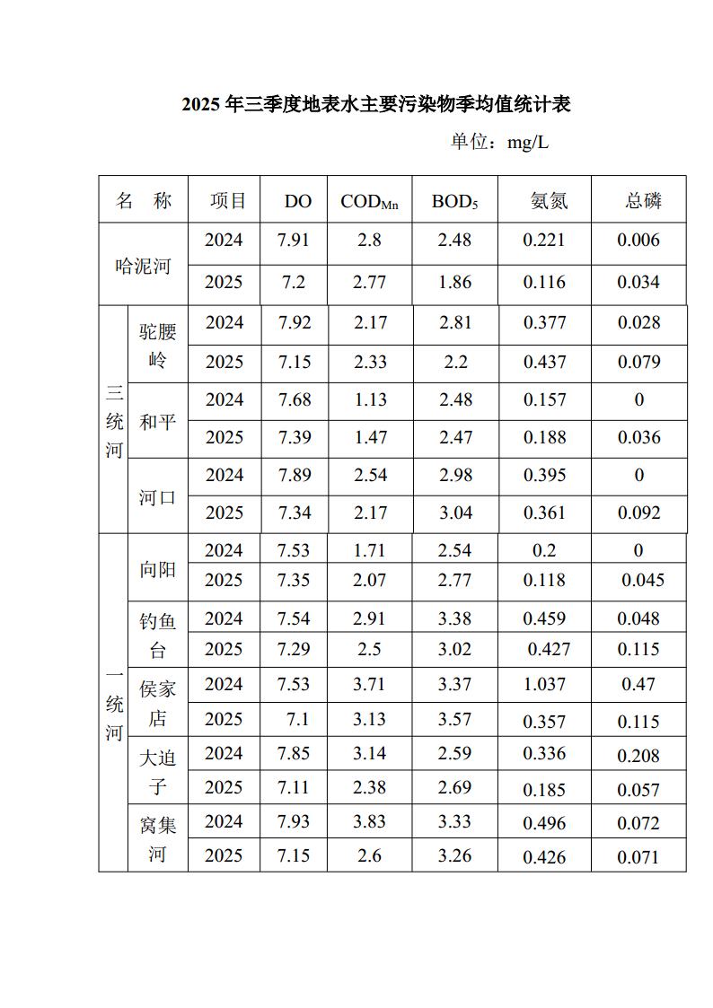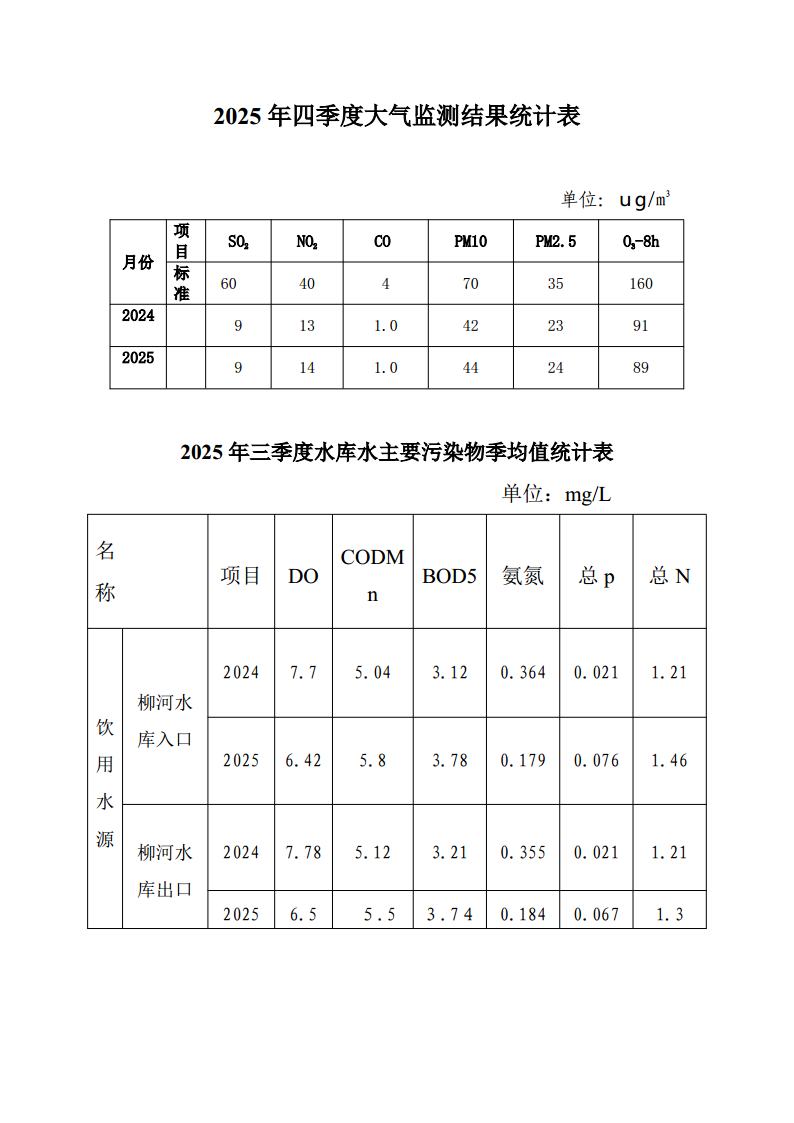 现将2025年第四季度柳河县地表水环境质量状况和柳河镇大气环境质量状况公布如下: